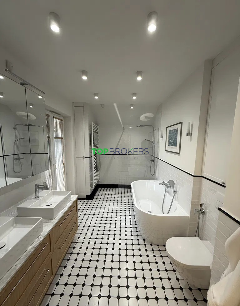 * łazienka przy sypialni: prysznic, wanna, dwie umywalki, wc;