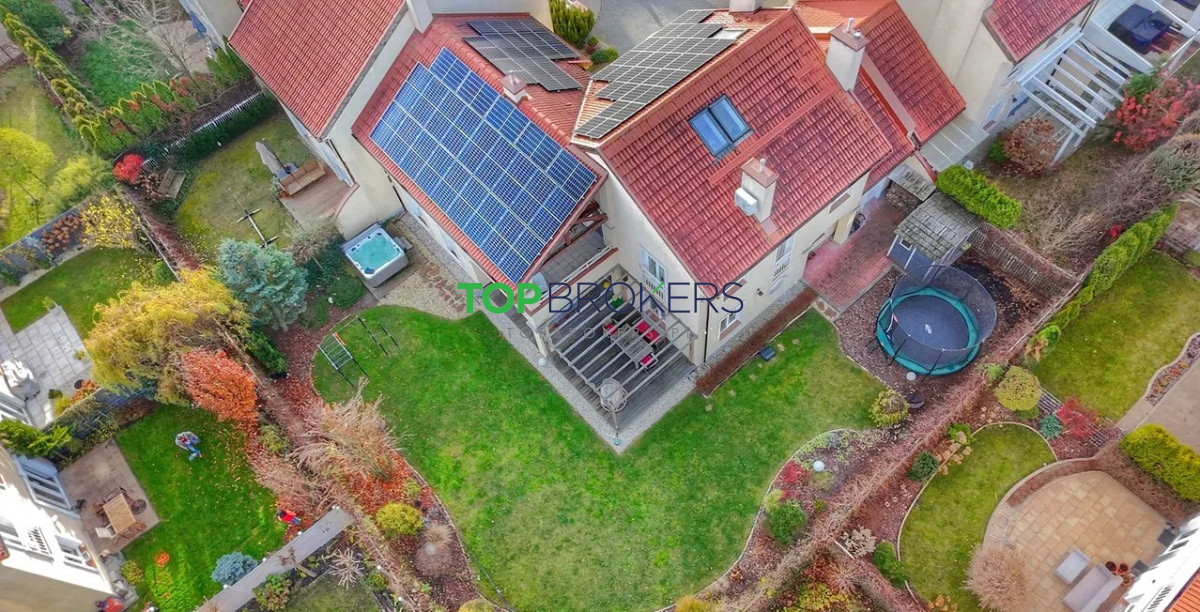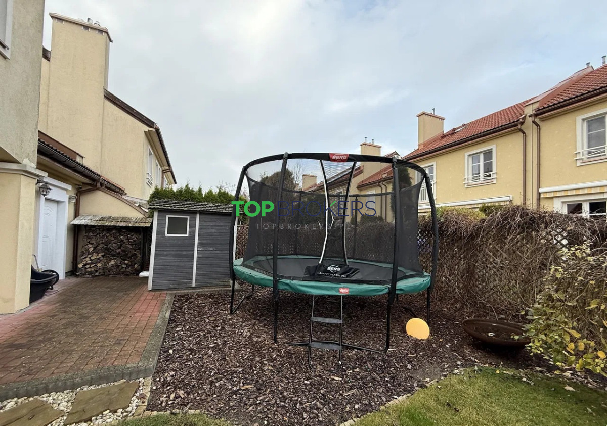 Na posesji ogród, taras, budka na narzędzia ogrodnicze, jacuzzi, trampolina. Ogród z systemem automatycznego podlewania, zainstalowany robot koszący.