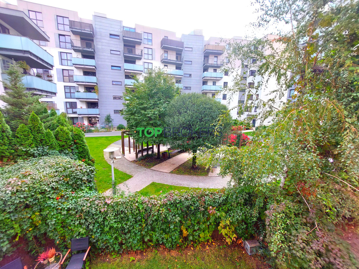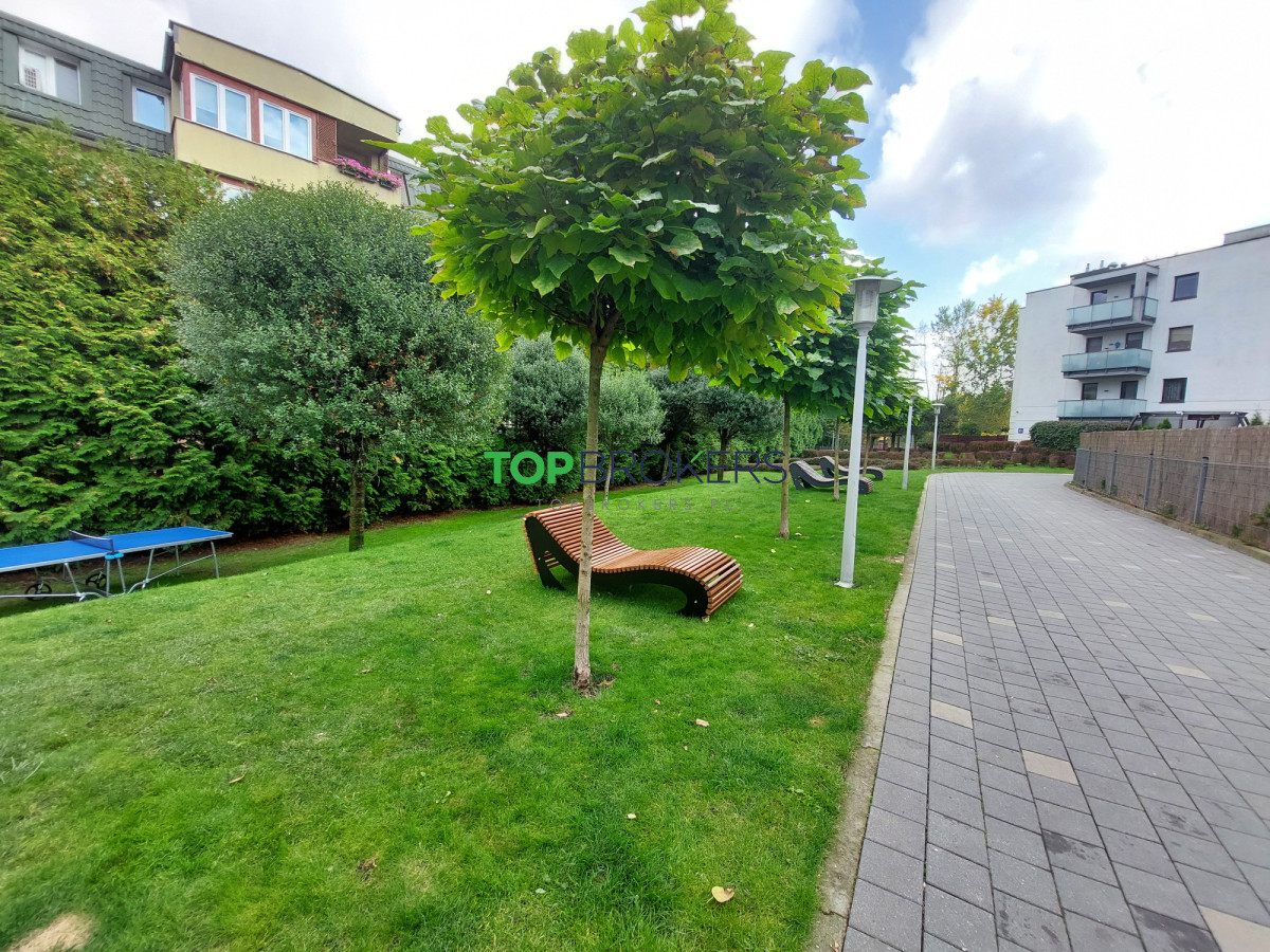 Osiedle zamknięte, chronione, jest monitoring. Na terenie zadbane patio, dużo zieleni, plac zabaw, boisko do gry w siatkówkę, stojaki na rowery, Przyjazne warunki dla rodzin z dziećmi. Miejsca parkingowe dla gości na płatnym parkingu obok osiedla.