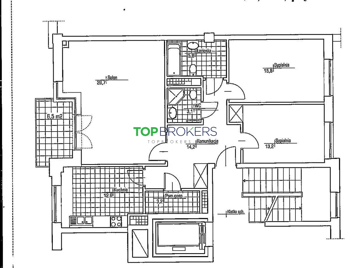 Trzypokojowe mieszkanie do wynajęcia 97m2, piętro 5/6 z windą w budynku z 2003 r. przy ul. Podchorążych, Mokotów Sielce.