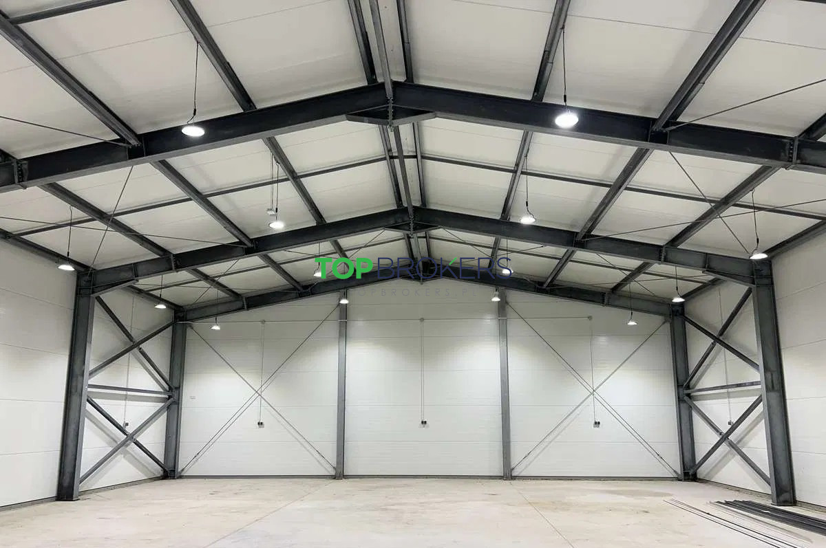 Hala to konstrukcja stalowa, na elewacji płyta warstwowa 120mm (pir), na dachu 170 mm (pir), co gwarantuje wysoką termoizolację. Posadzka niepylna, izolowana xps 500. Oświetlenie LED.