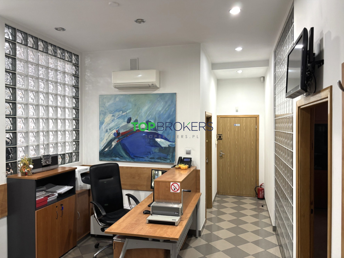 Lokal z klimatyzacją, jest jasny i funkcjonalny. Kameralne i spokojne miejsce, na piętrze znajdują się trzy lokale, z osobnym wejściem oraz windą.