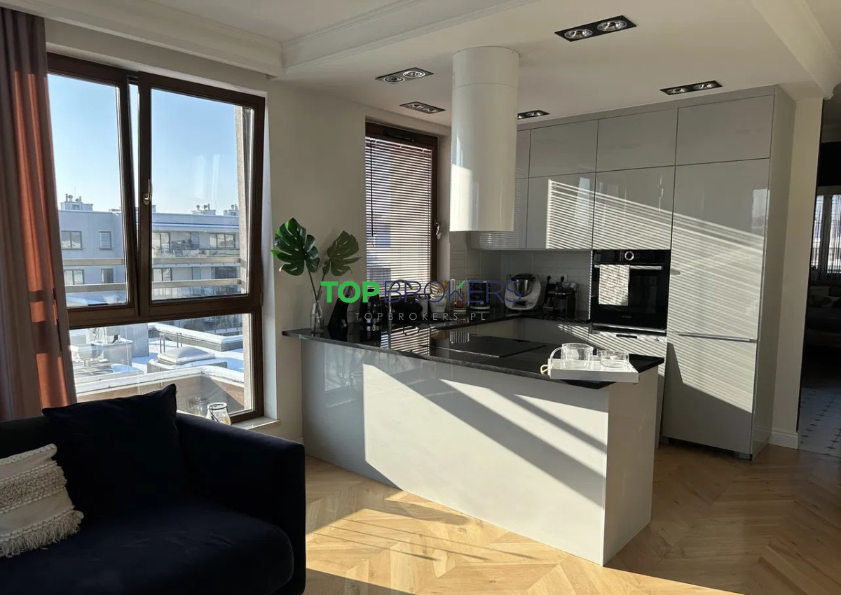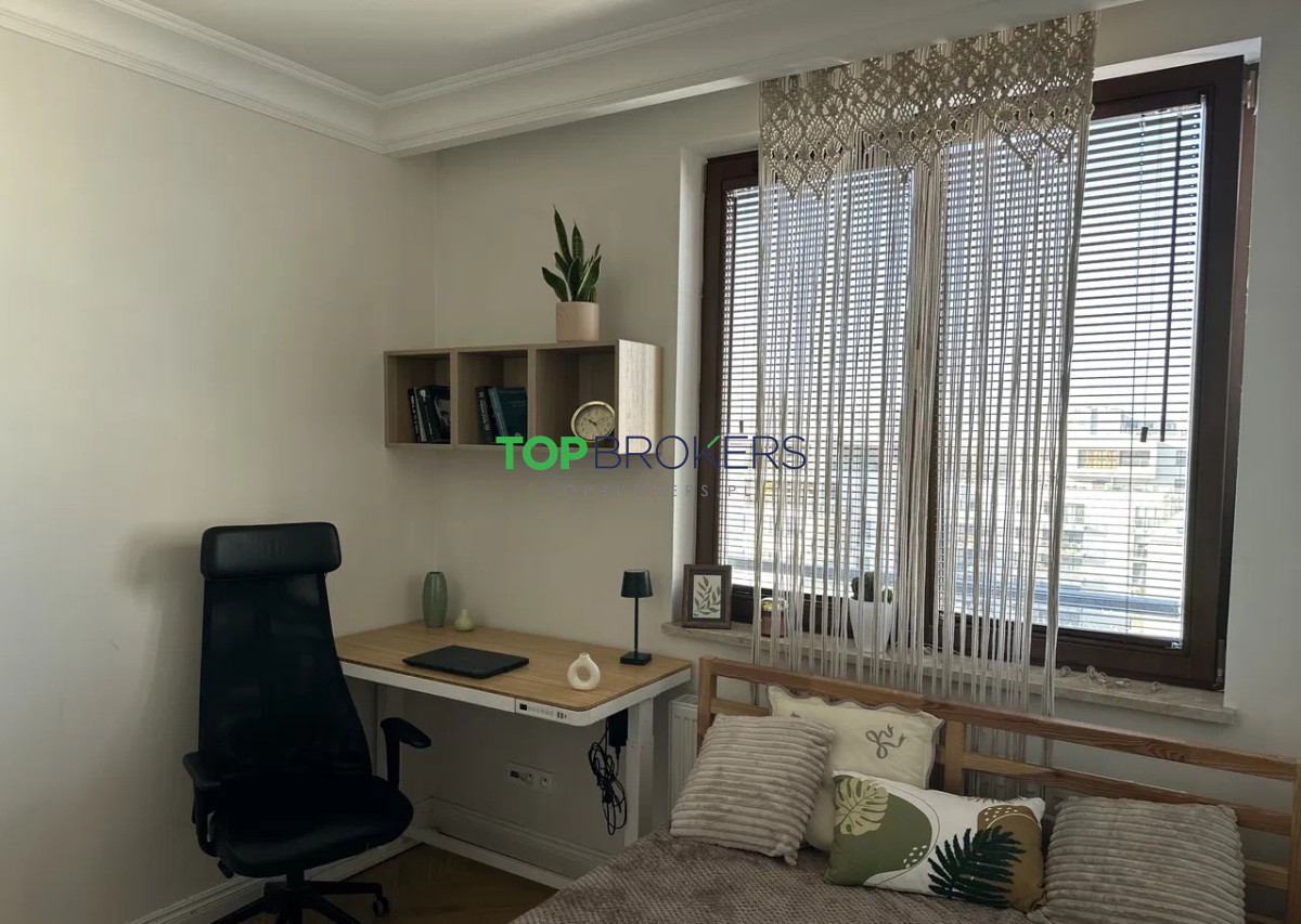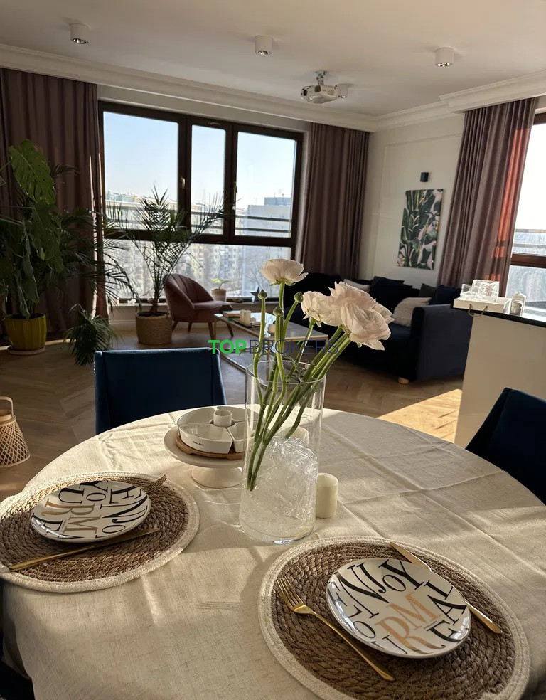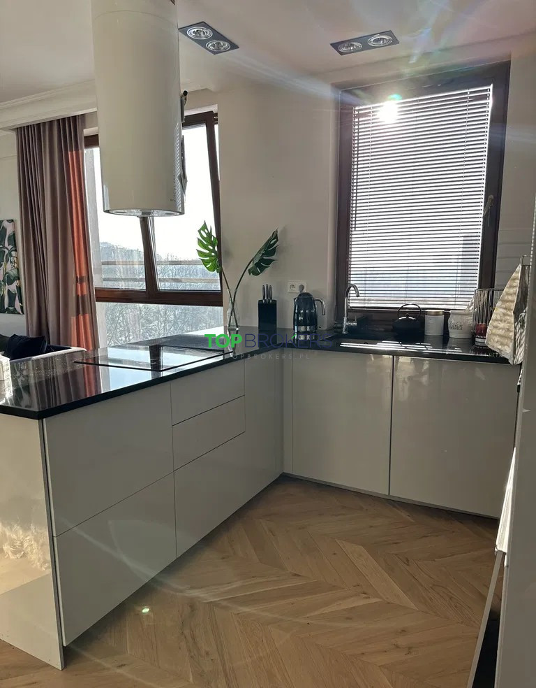Mieszkanie wykończone z dbałością o każdy detal, z użyciem wysokiej klasy materiałów, m.in. blat z naturalnego kamienia, dębowy parkiet, solidny sprzęt AGD. Piękny widok z okna na panoramę miasta.