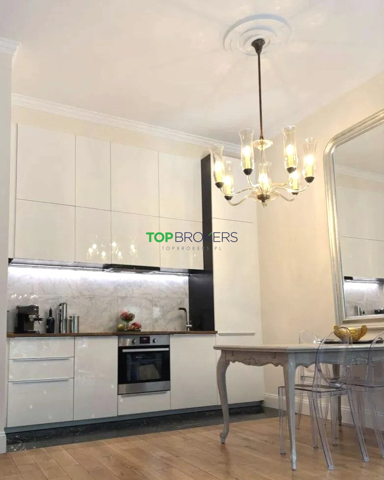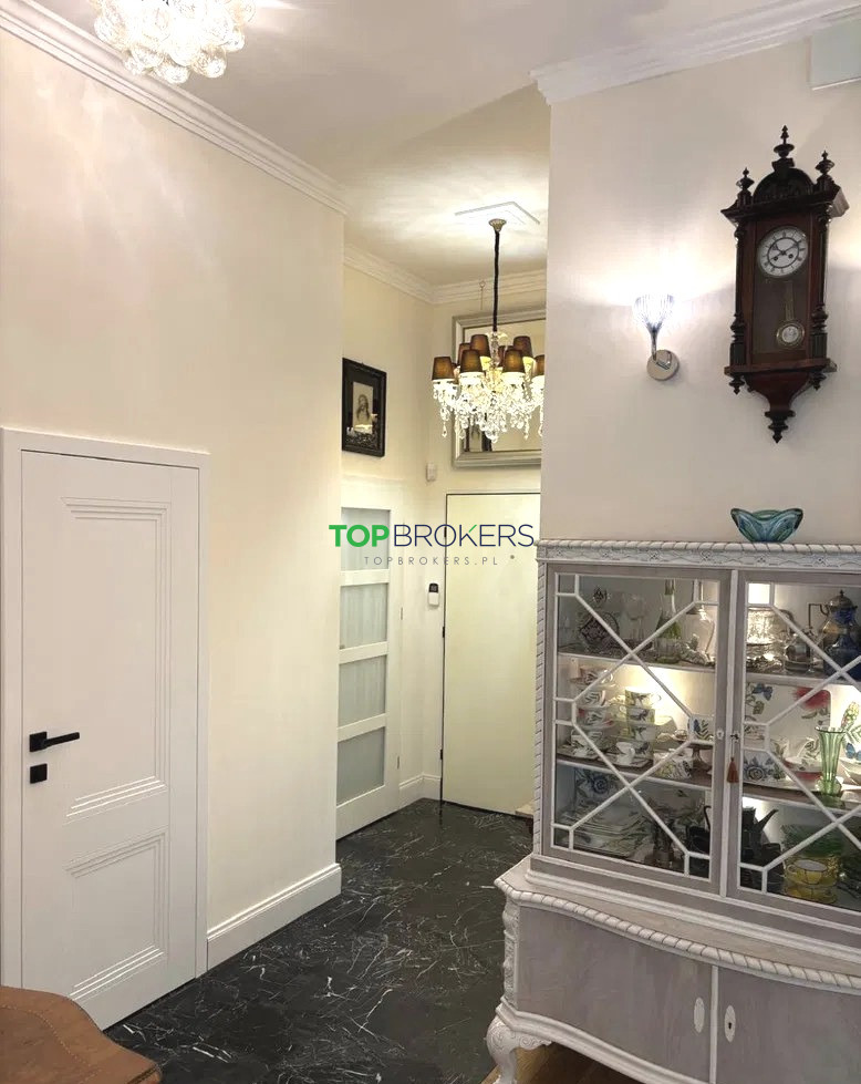 Wysokość pomieszczeń 340 cm, wykończone w wysokim standardzie, sztukaterie sufitowe, na podłogach lita deska dębowa i marmur. Okna trzyszybowe, aluminiowe, antywłamaniowe, moskitiery, żaluzje. Mieszkanie wyposażone w instalację alarmową (czujki), drzwi wejściowe antywłamaniowe, wejście przez wideodomofon.