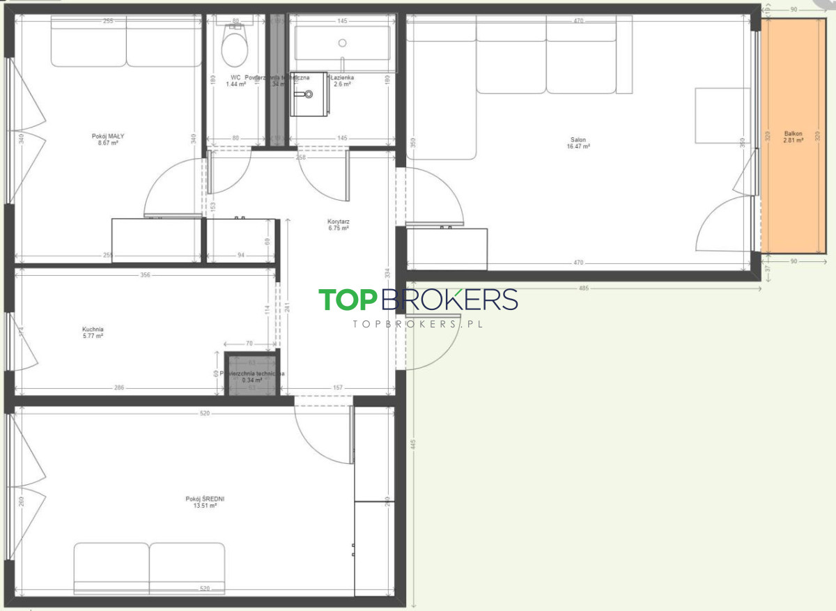 * przedpokój: szafa na ubrania i buty;