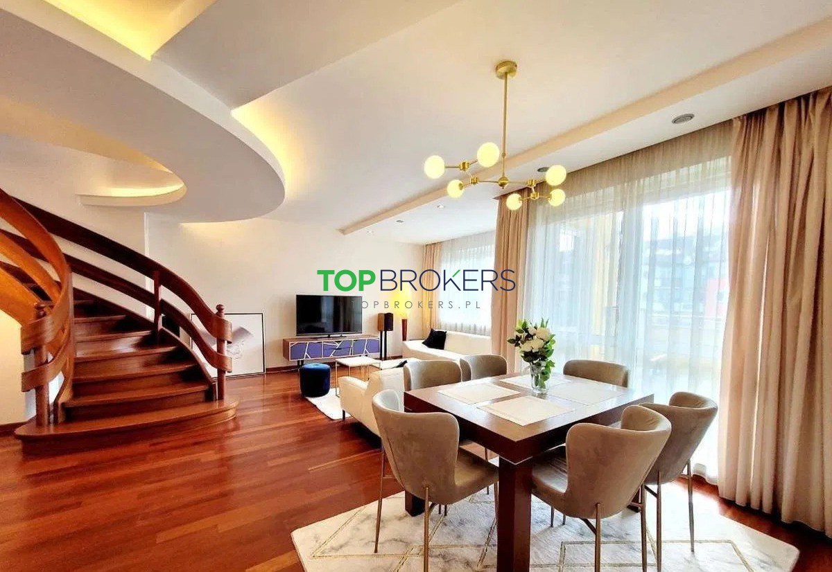 Do wynajęcia 7-pokojowe dwupoziomowe mieszkanie 190 m2, piętro 4 i 5/5 z windą w budynku z 2007 r. przy ul. Wańkowicza, Ursynów Kabaty.