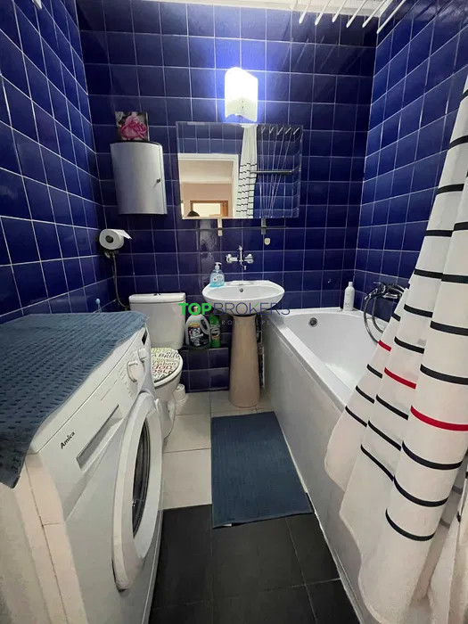 * łazienka: wanna z funkcją prysznica, wc, pralka;